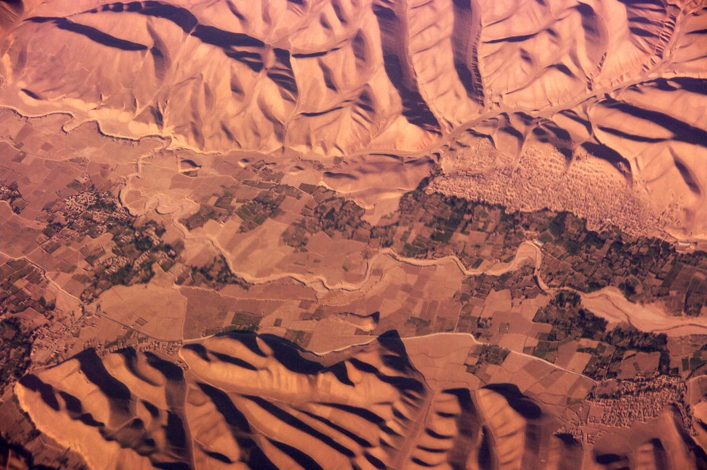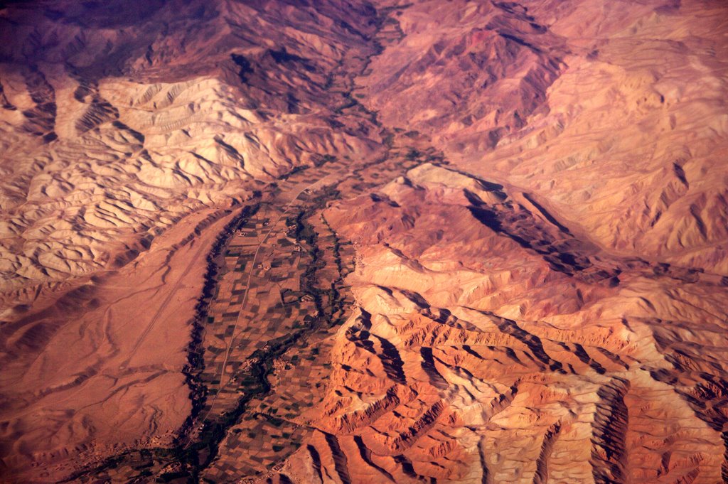 On our way to Europe we were lucky enough to fly directly over Afghanistan just as the sun was setting. The flight information screen put us half way between Kandahar and Kabul at 30,000 feet. The country was amazing – incredibly rugged with very little vegetation except for a few cropped and settled river valleys.