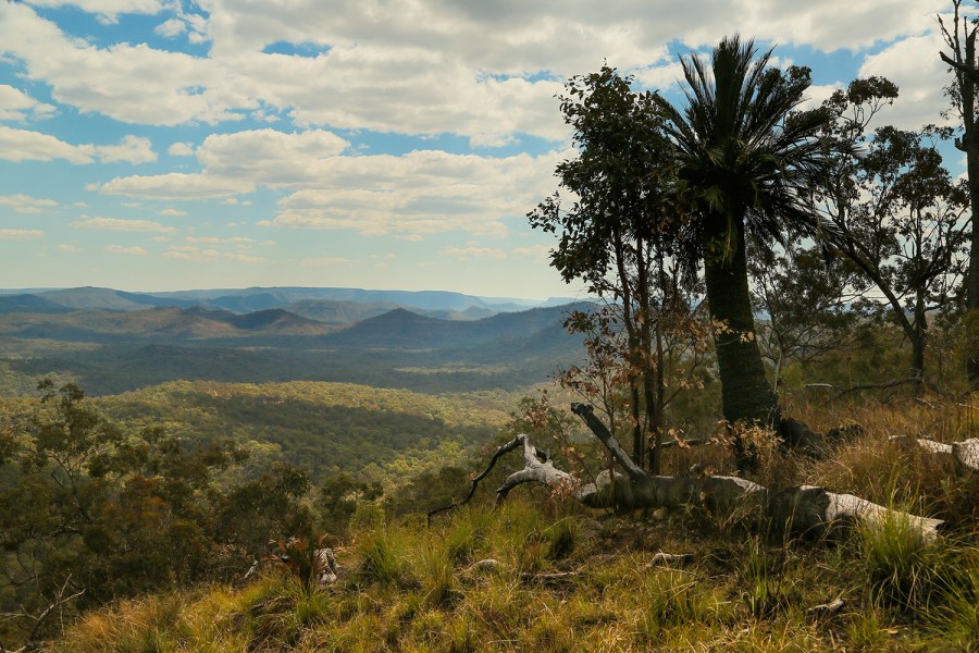 On top of the plateau the view stretched out in all directions. The plateau is over 1200 meters above sea level – the highest plateau in Queensland. We drove up to the head of Carnarvon Creek, where the track winds through a forest of giant Mahogany trees.