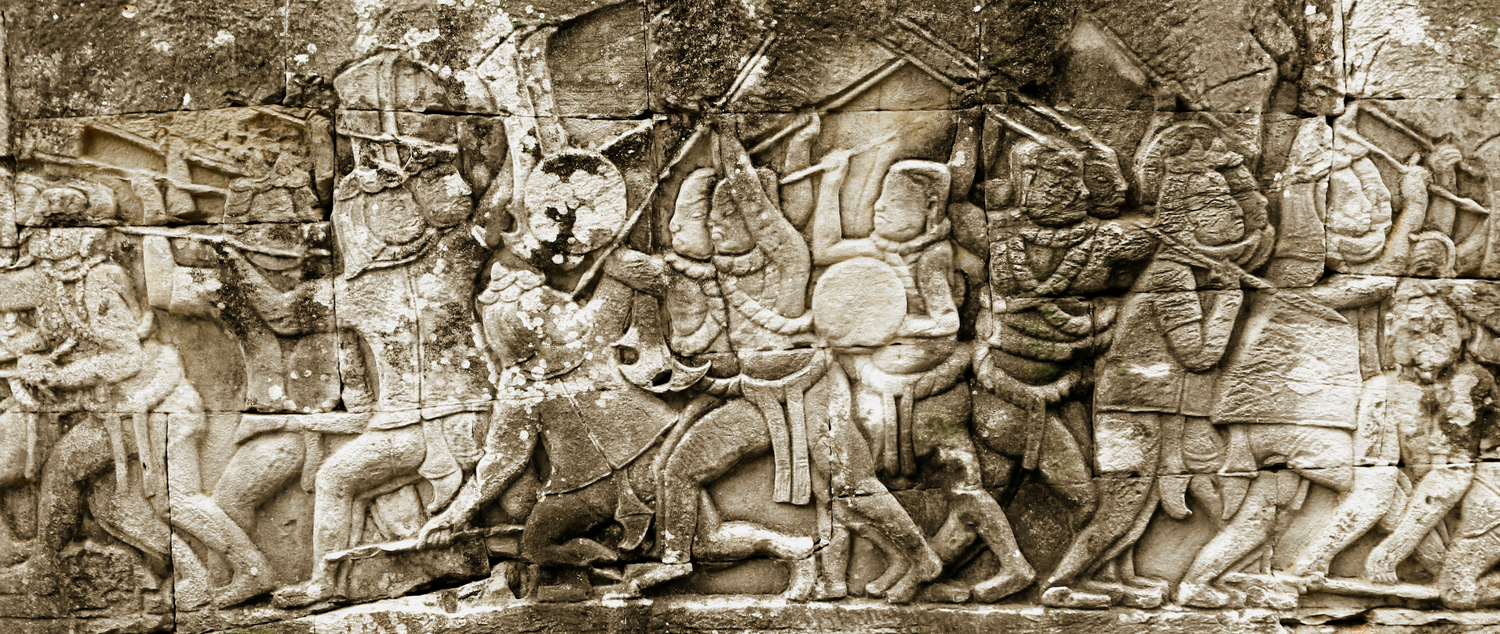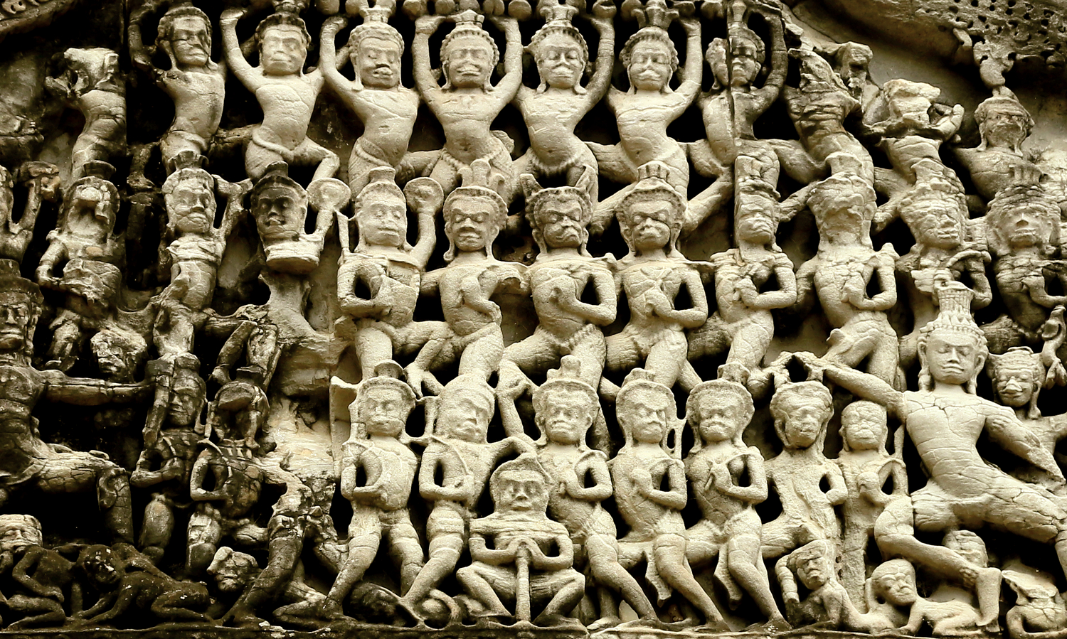 Thom Bayon Temple features large carved stone heads of Buddha and beautiful, intricate relief carvings of daily life back in the 11th and 12th centuries.