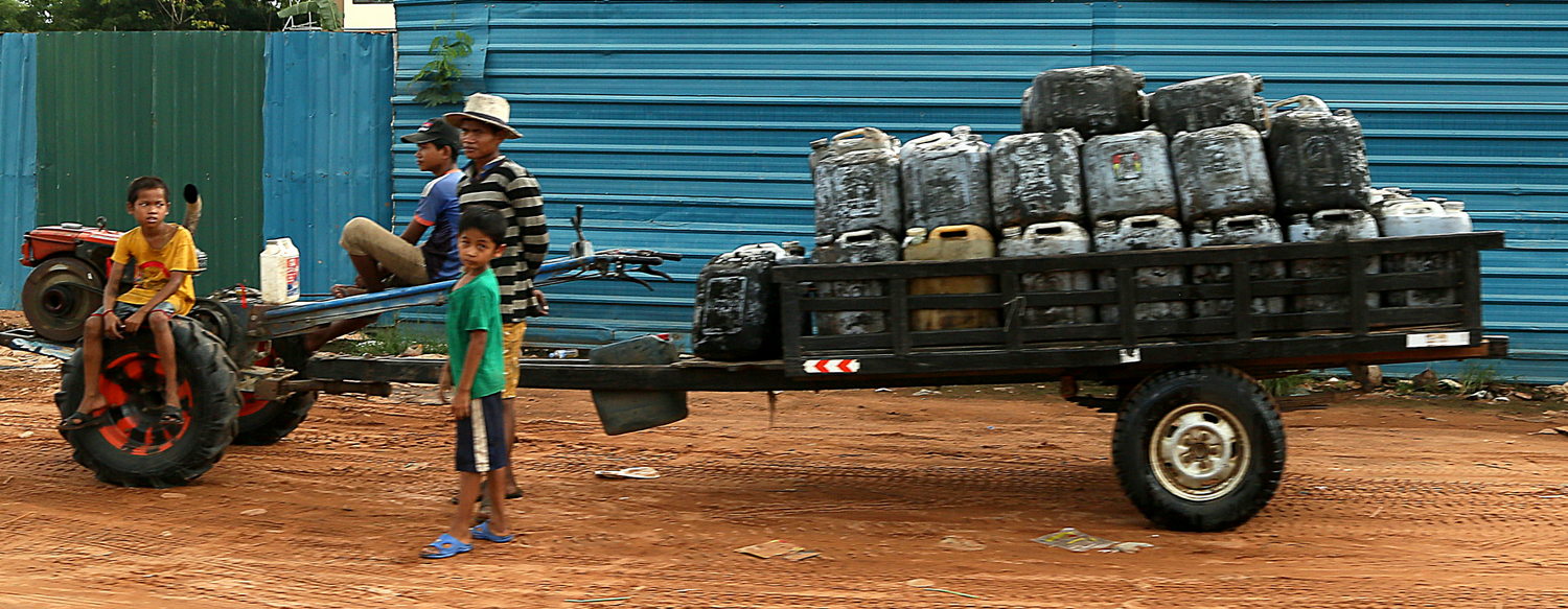 Siem Reap petrol tanker – powered by a mechanical plough.