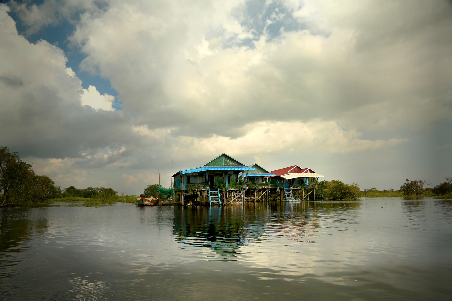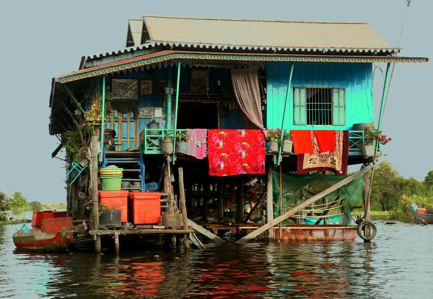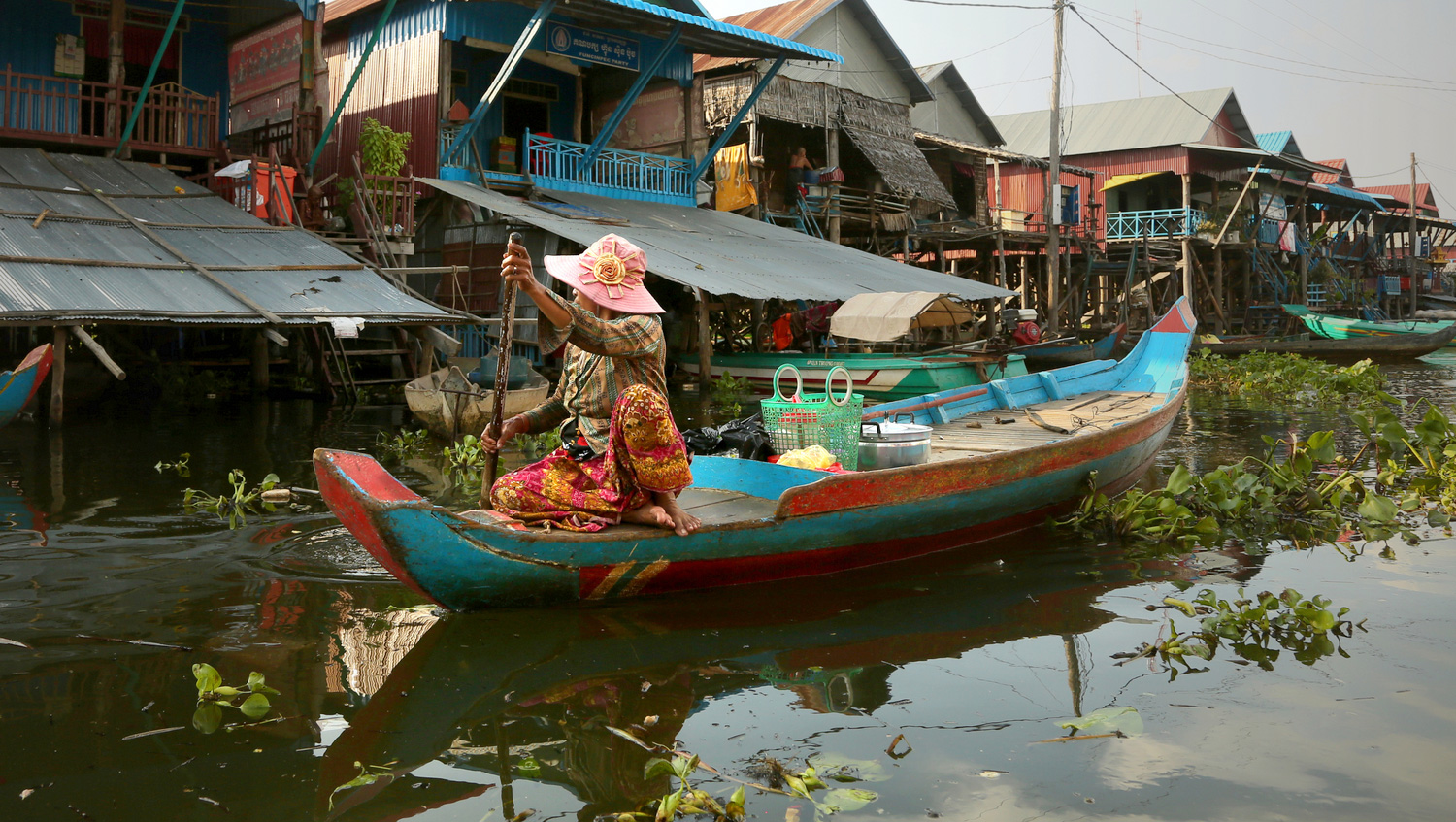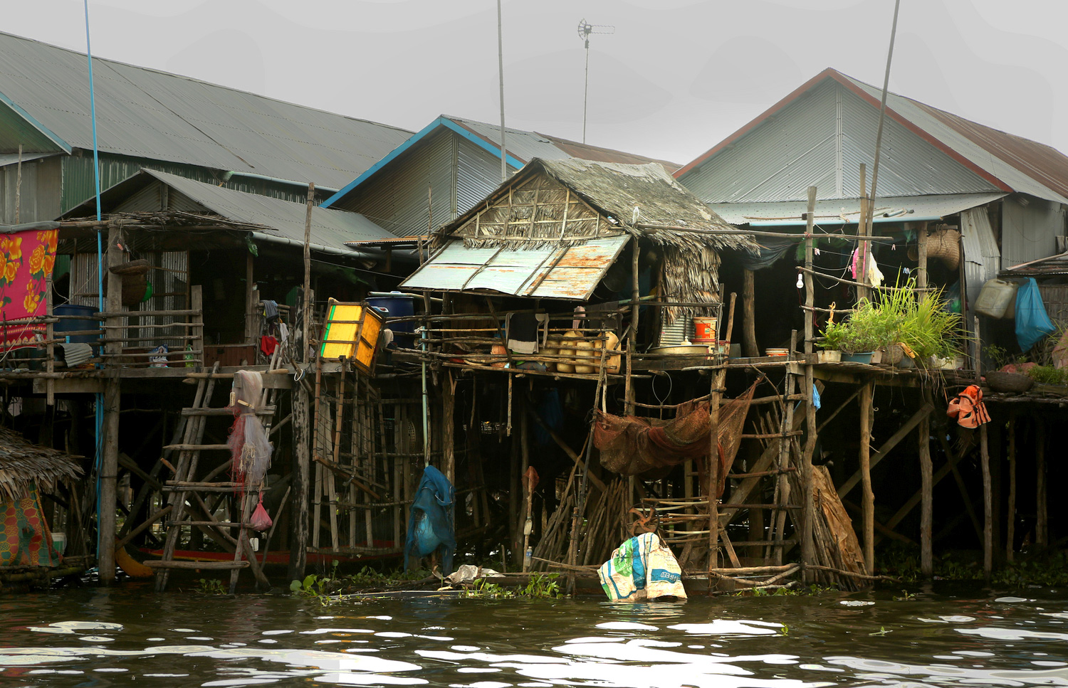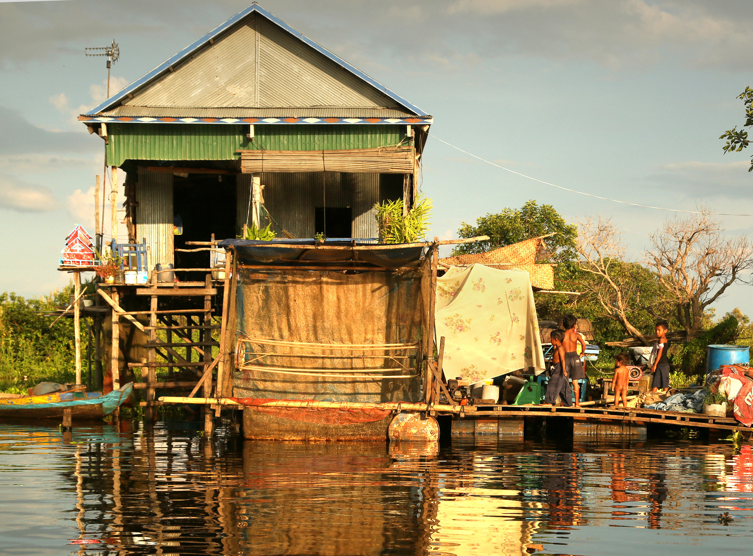 From Siem Reap we travelled by tuk tuk down to Kampong Phluk – a village of stilt houses, some colorful, some old and thatched, built in the Tonle Sap Lake. It’s a fascinating village – life is lived entirely on the water. Kids grow up in boats and soon become skilled fishermen.