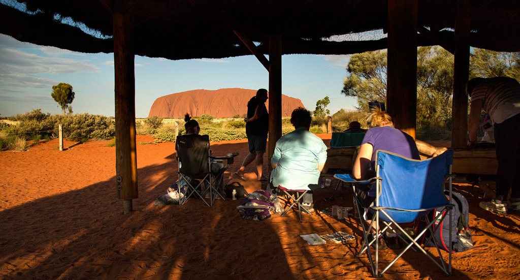 We left Arkaroola and headed down to Adelaide, exploring Wilpena, the southern Flinders and Burra, on the way. Our truck was parked in secure parking for the two weeks of the workshop. We spent a night in Adelaide, then we joined the painting group and travelled back up to Wilpena Pound Resort by coach for our first 5 days of the workshop.