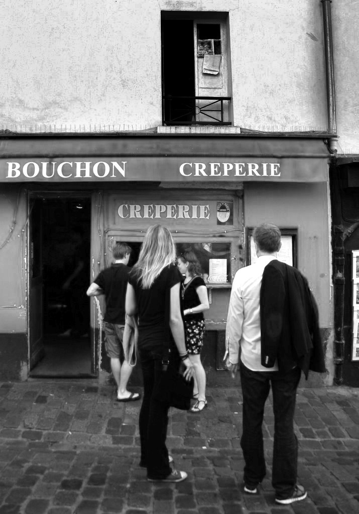 From our apartment window we look down on one of the busiest bars in Montmatre. I’m sure Picasso and Henry Miller and Alfred Jarry all drank here. Every night sees dozens of people spilling out onto the streets.