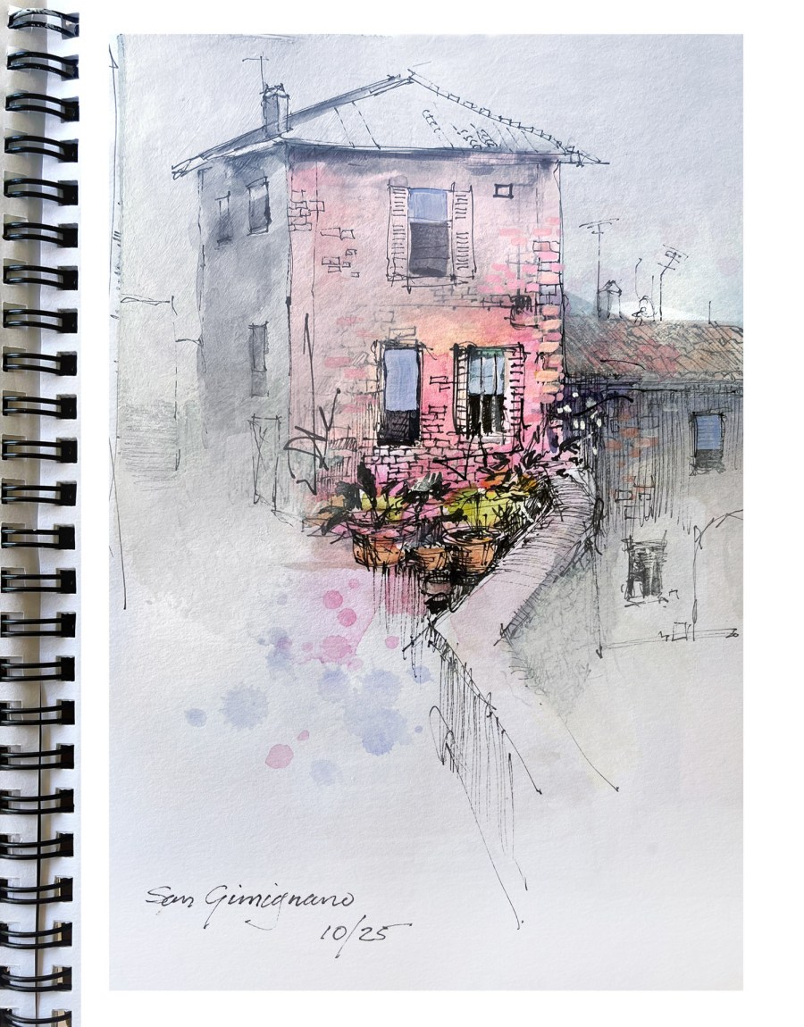 We visited a number of wonderful Medieval Tuscan villages, sketching and taking photographs which formed the basis for our paintings back in the studio.
