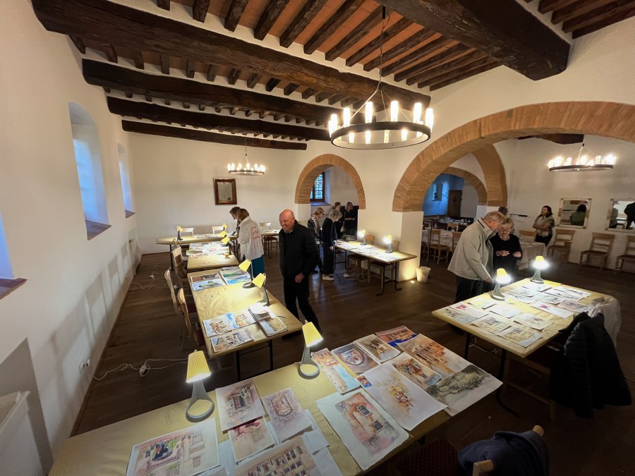 The painting studio at Tenuta di Sticciano was a great room. It was good to be able to display everyones work on the last day and enjoy what we had achieved with a glass of local wine.