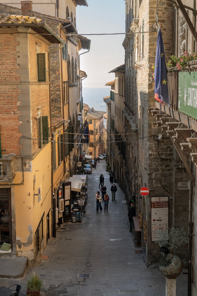 From Rome we headed up to the hill town of Cortona. The town’s history goes back to Etruscan times and it’s location, on top of a steep hill surrounded by flat plains is spectacular. The highest point in the town is dominated by a Medici Fort which is now a series of galleries presenting some fantastic photographic exhibitions.