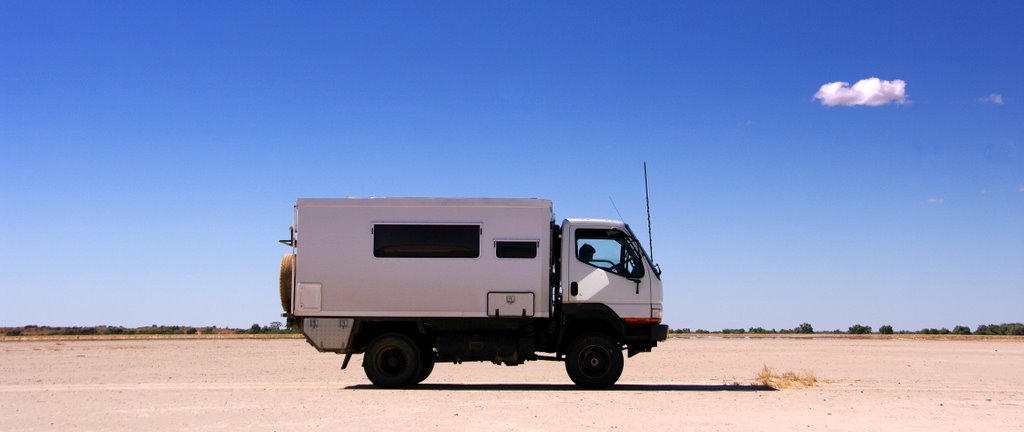The weather turned foul north of One Tree. Pulling off the road quickly bogged us down to the axle. A shovel, frantic digging and a lot of encouragement and advice from the passenger window, soon saw us on our way