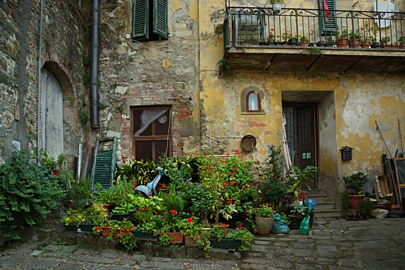View of the only level street in Cortona from our apartment window.