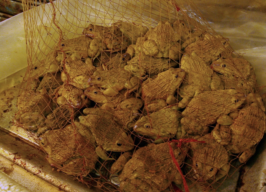 This bag of tasty live toads are also classed as food (and delicious according to the store owner).