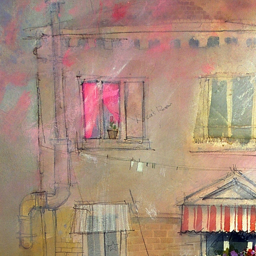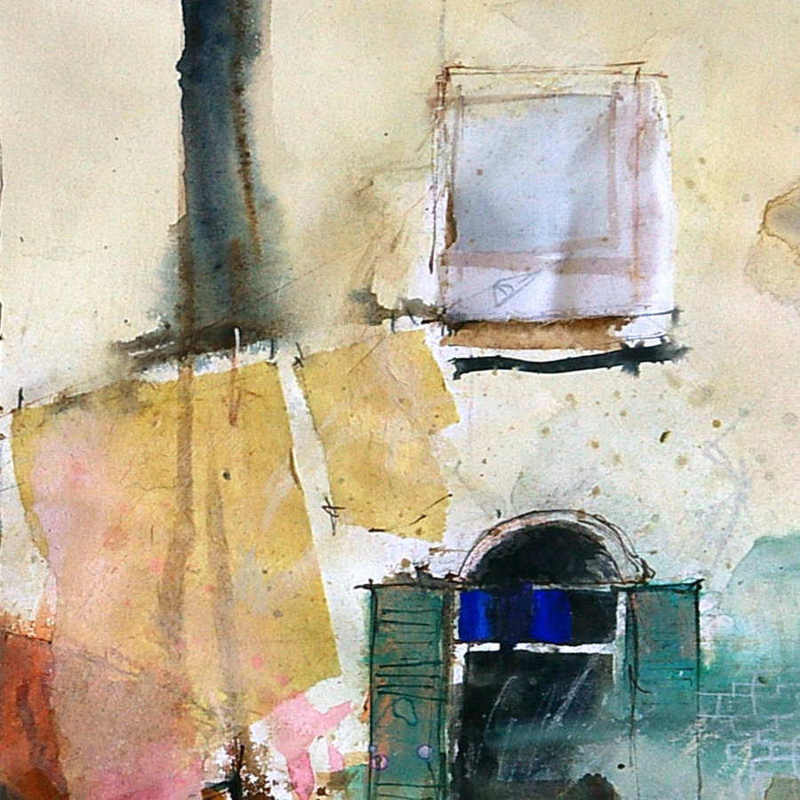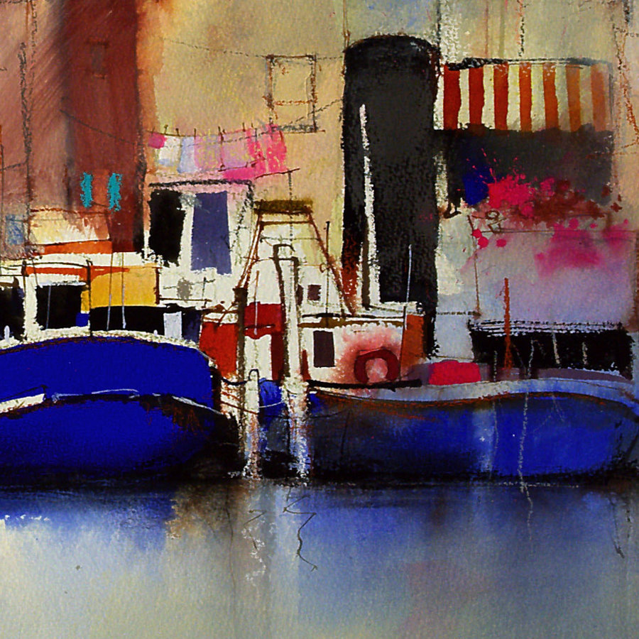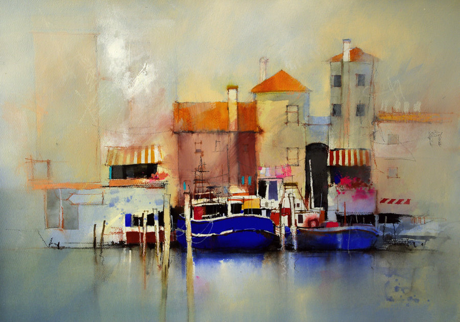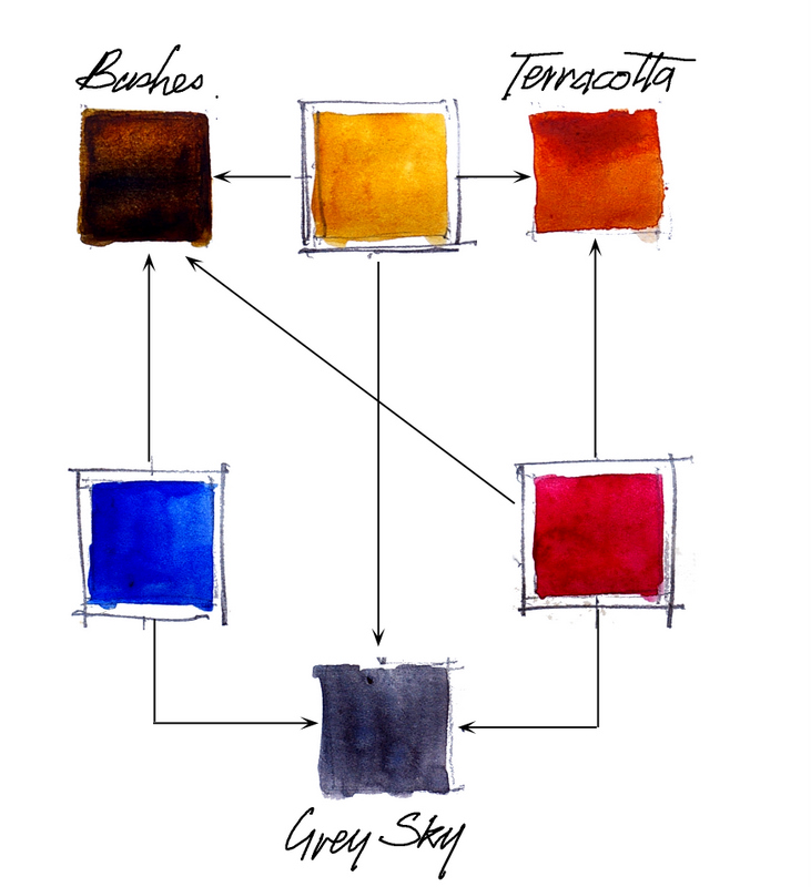 Flat Ultramarine gouache used to squeeze more vibrancy from the warm, transparent watercolor.