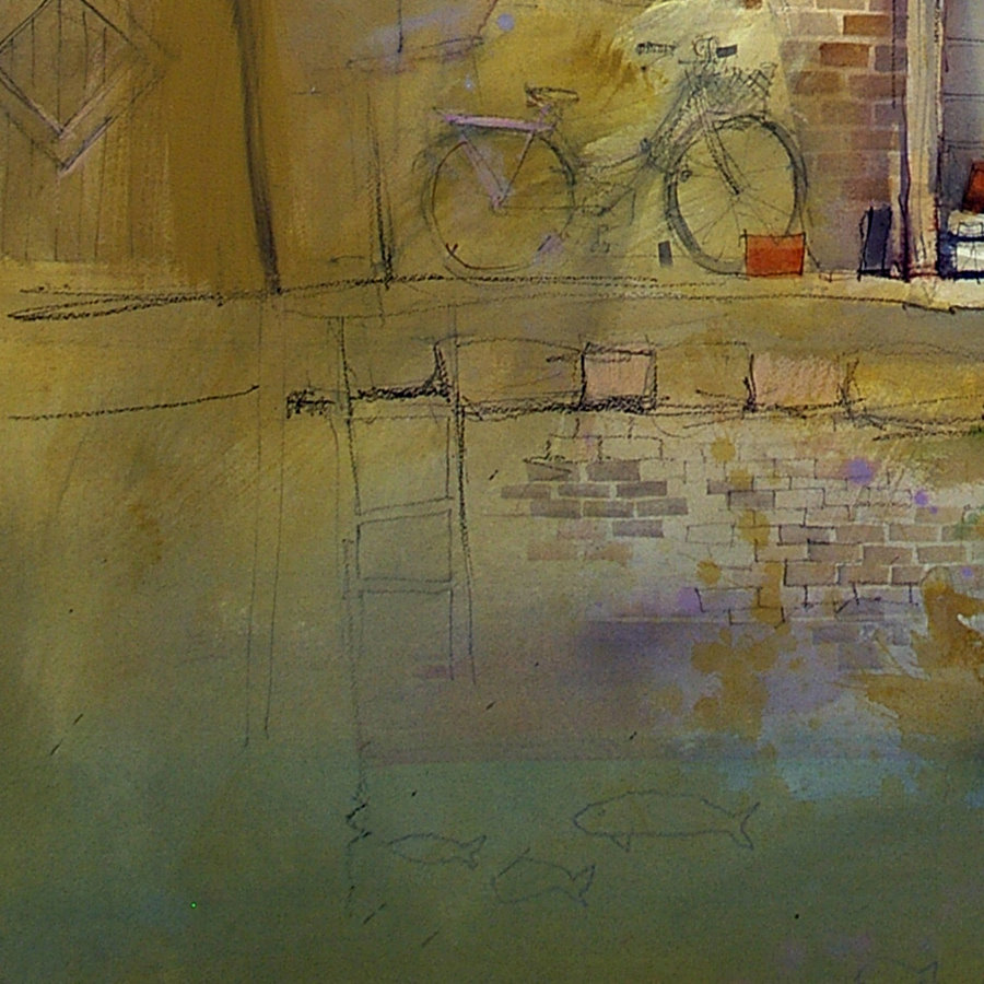 These Lemons were painted with a mixture of crayon ink and pastel pencil. A gesso wash was scrubbed over the foreground before the final yellow crayon marks were applied. Before the Gesso had dried the lemon was carefully sliced and dropped into a Gin and tonic.