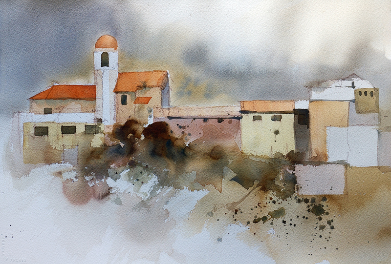 It is always a pleasure meeting new students and catching up with students from previous workshops. One of our new students for the second week was Carol and her assistant, Kim. What an inspiring lady – taking up watercolor a couple of years ago after a severe car accident ended her career as a lawyer and left her a quadriplegic. Forgetting about her disability, the standard of her paintings is excellent, but to see how she has overcome so many physical hurdles to produce the work she does is just amazing. On top of this, she is determined to keep on improving and works hard to that end.