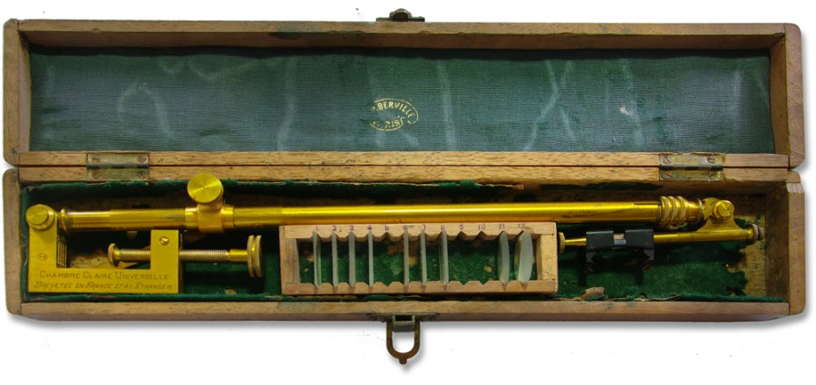 The device was patented by William Hyde Wollaston in 1806 and was used as an aid to to sketching and visual documentation prior to the development of the camera.