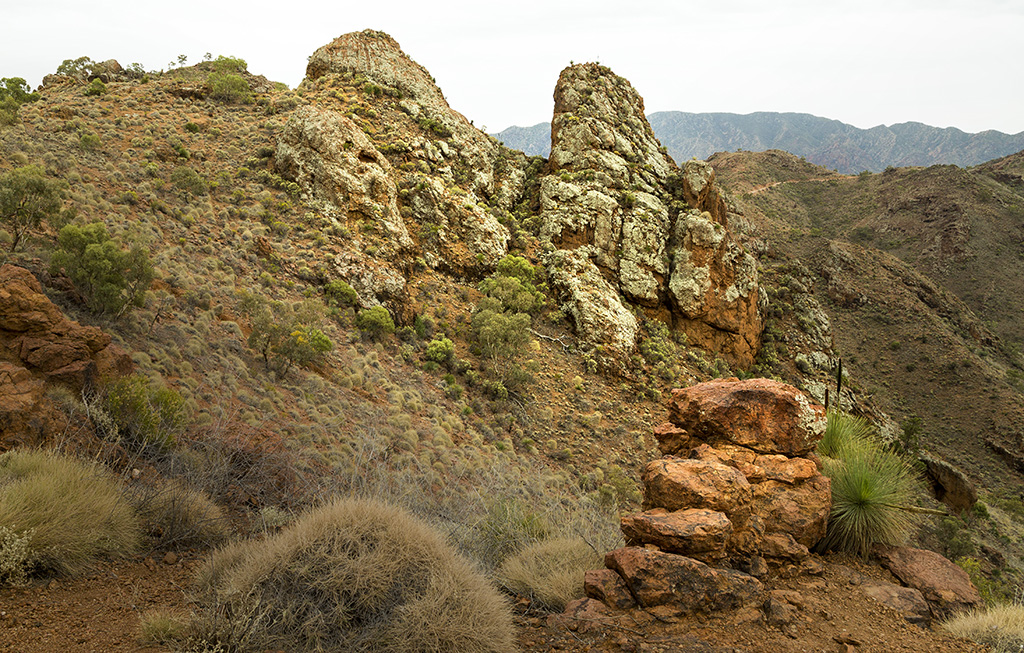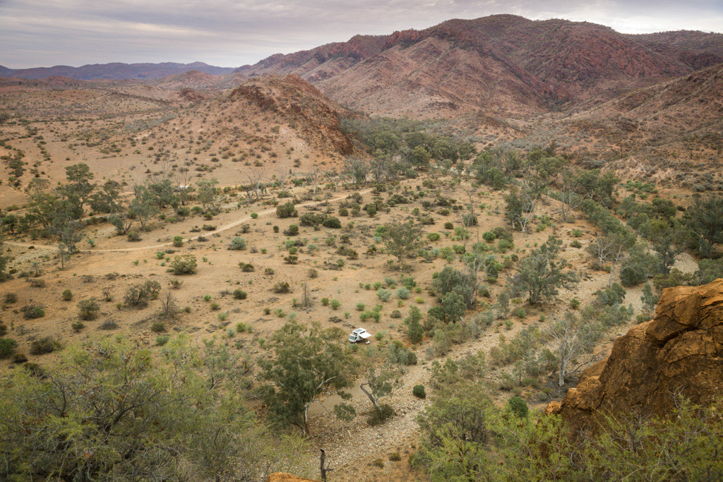 We left Arkaroola and headed down to Adelaide, exploring Wilpena, the southern Flinders and Burra, on the way. Our truck was parked in secure parking for the two weeks of the workshop. We spent a night in Adelaide, then we joined the painting group and travelled back up to Wilpena Pound Resort by coach for our first 5 days of the workshop.