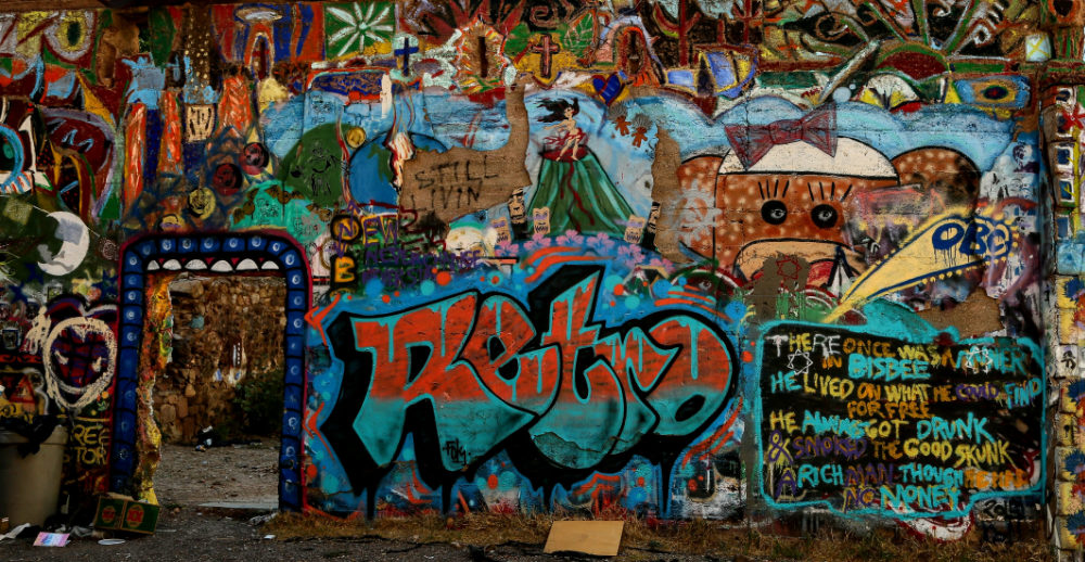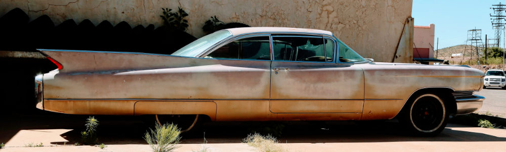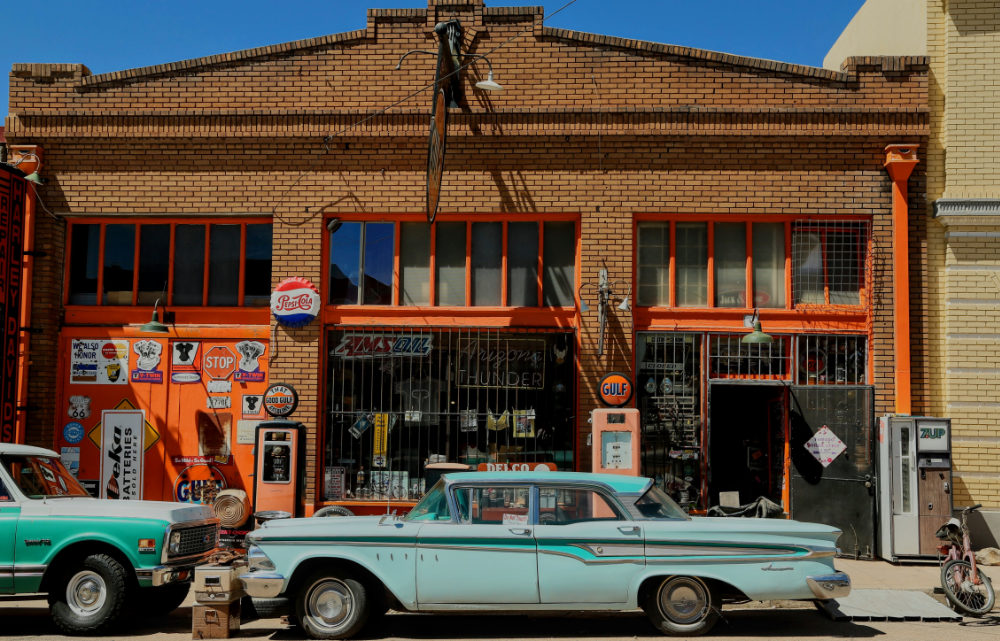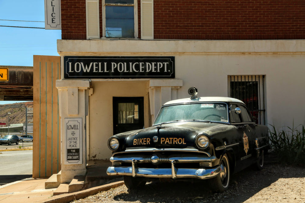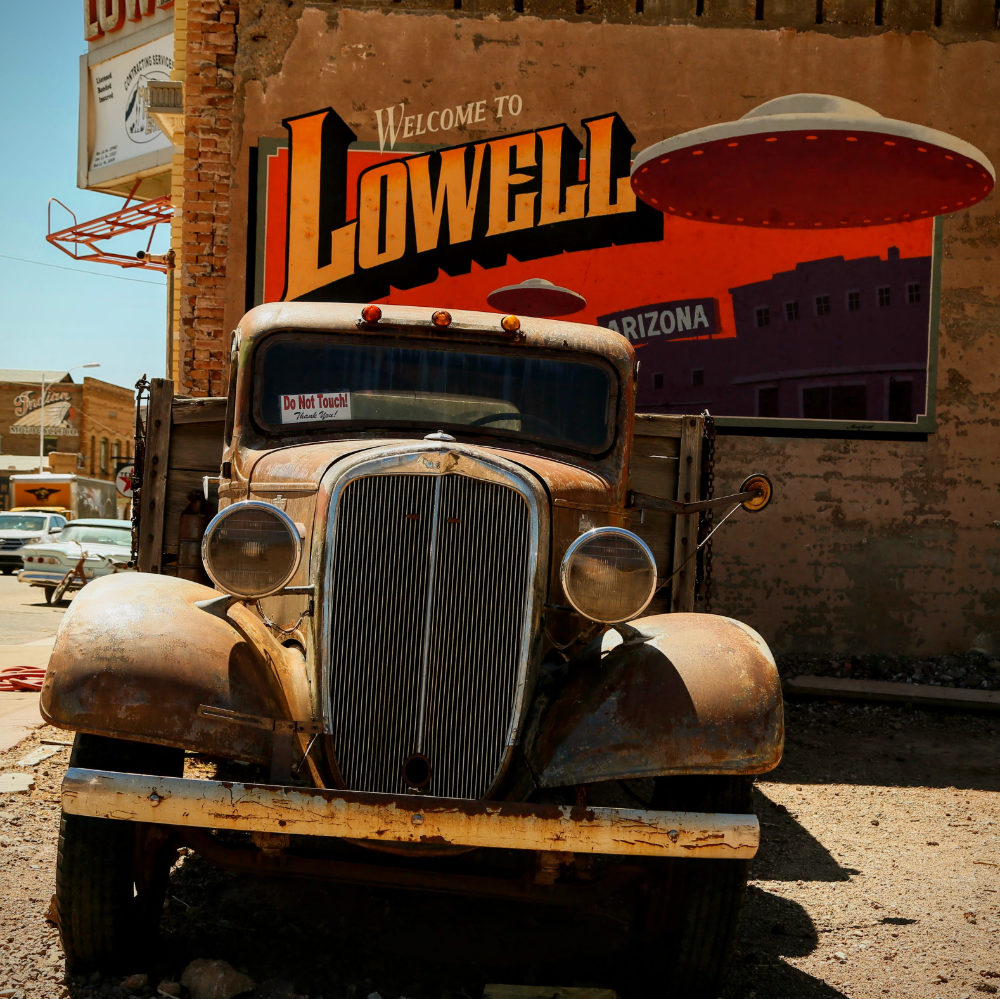 Just outside of Bisbee is, what’s left of, the town of Lowell. In the 1950’s the mine pit was expanded to extract more copper and most of the town was consumed in the expansion. What is left (Eire Street) appears to have been frozen in time. Crumbling buildings, closed businesses, old cars, weeds and debris. A fantastic and confusing place.