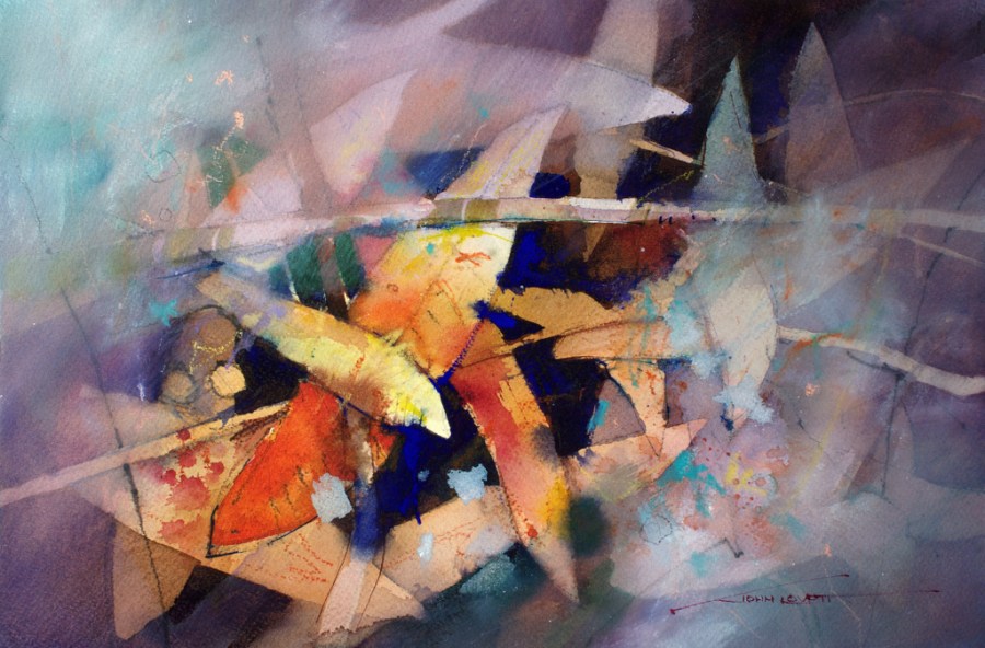 The process is a lot of fun and often triggers interesting ideas. The example below was done as a demo on aluminium composite panel primed with watercolor gesso. The heavy vertical marks were masked up and painted over the top with more watercolor gesso then the tones were adjusted.