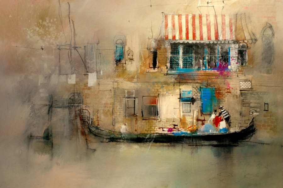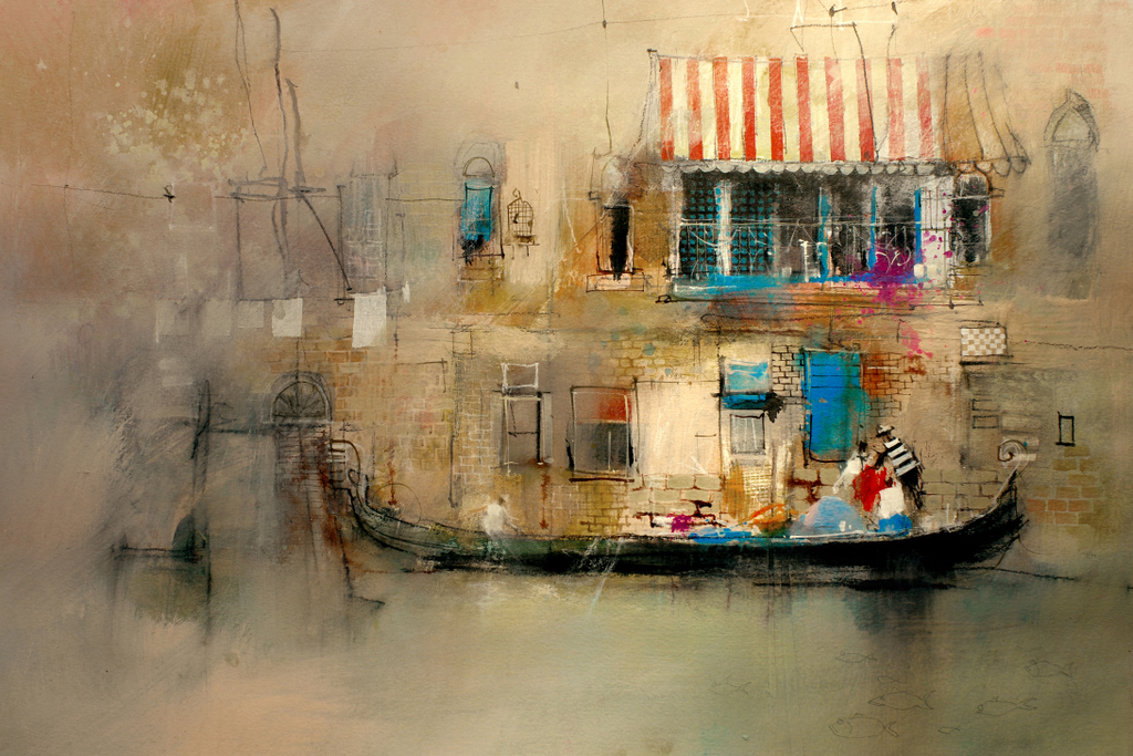There is nothing like a looming magazine deadline to speed up the painting process. I had just finished an article on controlling color temperature for International Artist Magazine and realized I didn’t have an example of a dominant warm painting using a cool contrast. Rather than go through paintings I already had, I decided to work on a sketch I did along one of the little back canals in Venice.