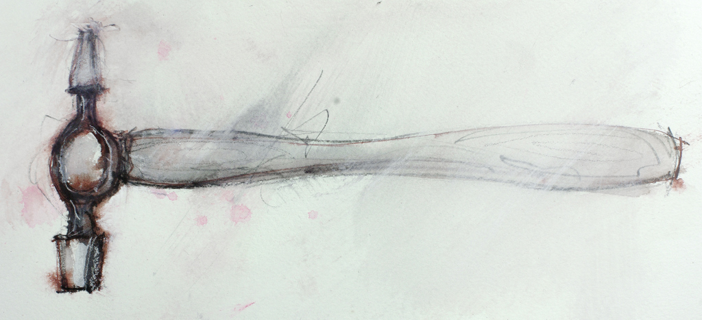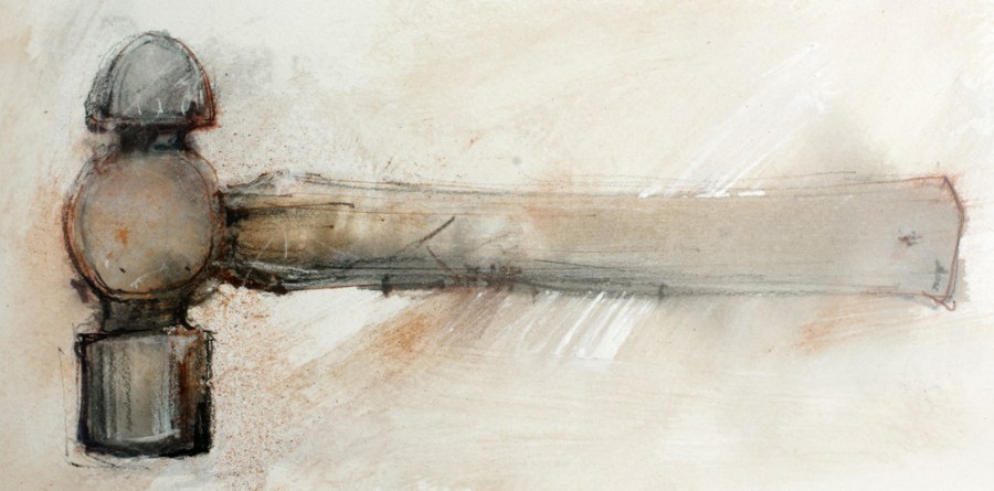 Over the past couple of weeks it has been pouring rain here, so I’ve been having a great time shut away in the studio painting hammers. It all started with the claw hammer and grew from there. Following through on an idea is a great way to build up a series of paintings. It gives you the chance to experiment with techniques, play around with the subject and not be too worried about the outcome. These were all done on paper with various combinations of Charcoal, Gesso, watercolor, gouache, ink and ocher powder.