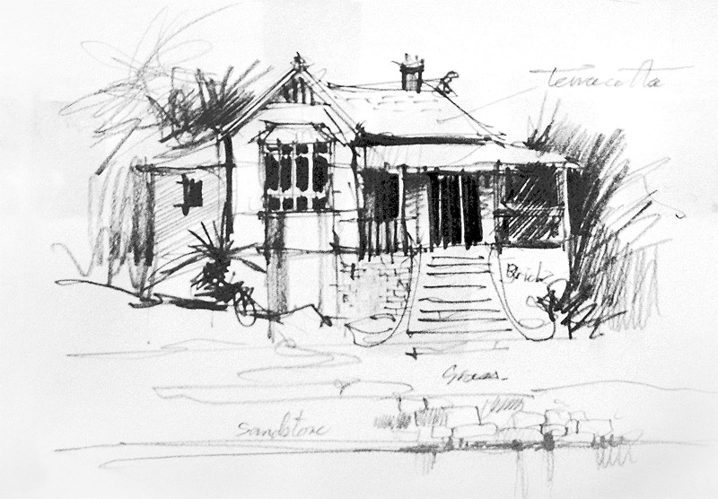 A few years ago I sketched this little cottage on Sydney Harbour. It was late in the afternoon and there was no activity – no sign of life at all. As I did the sketch I started wondering what had gone on here in the past. Such an amazing location, I could imagine parties on the verandah, kids running around, boats in the water, but now, nothing – just a little cottage gazing out across the water. It had a kind of empty sadness – a little neglected with vague evidence of lively past.