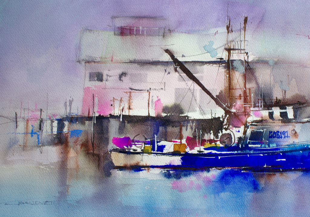 In this painting of Monterey Wharf, Ultramarine Blue gouache was used to give maximum impact to the focal point.