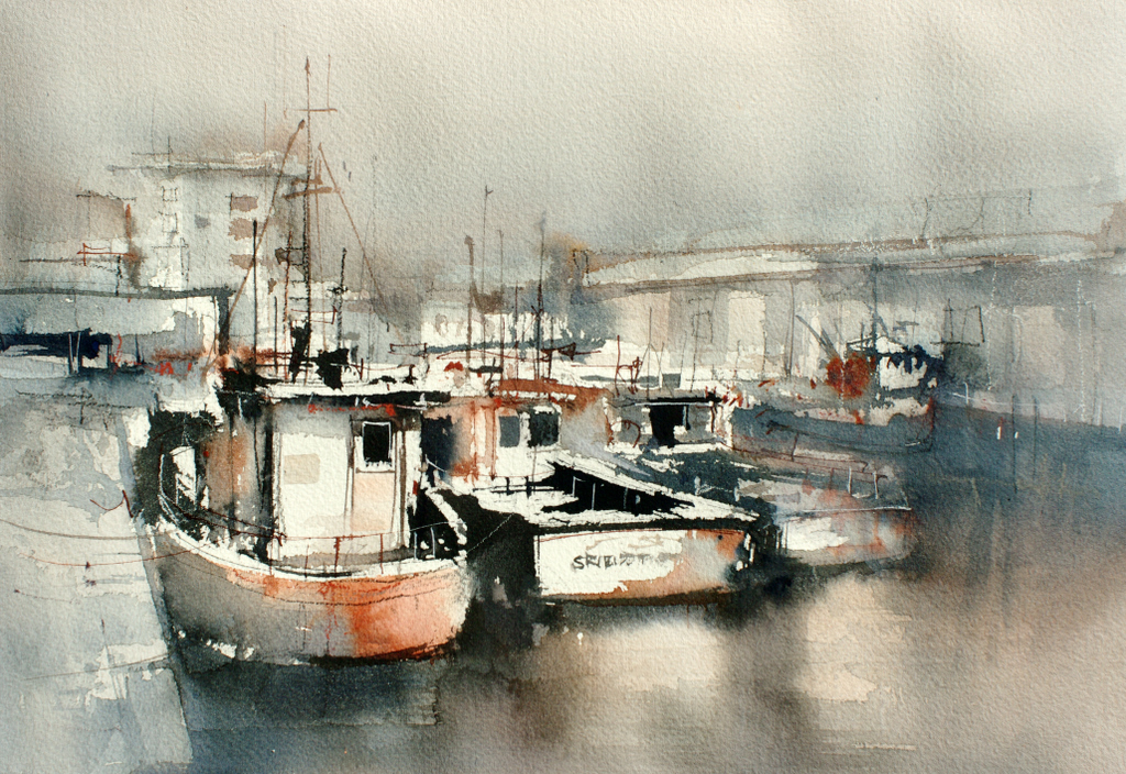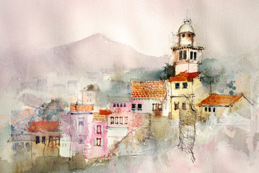 Another complicated subject treated in a simple way – playing around with washes while holding on to a clean, high contrast focal area.
