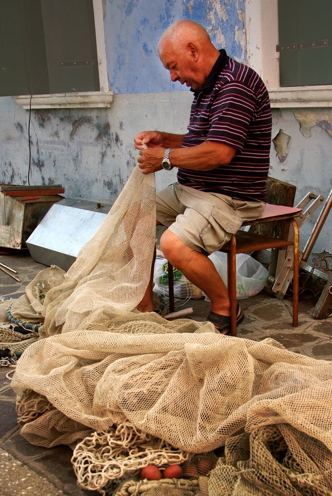 Burano is famous for its lace making, but I think this guy is mending a fishing net.