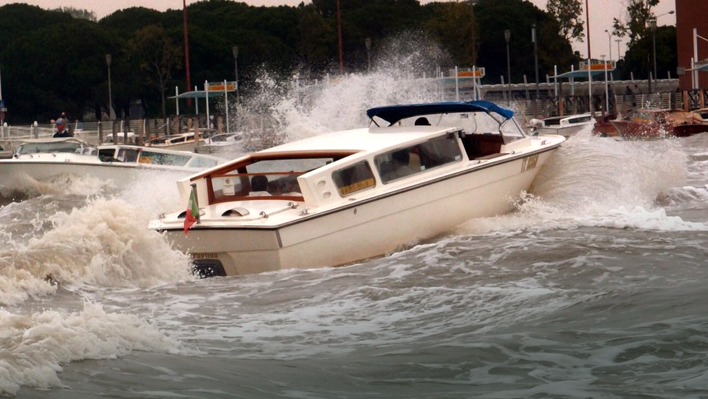 Leaving Marco Polo Airport by water taxi is a chaotic experience. 110 Euro from the airport to the city means the drivers are pretty serious about getting the job done quickly.